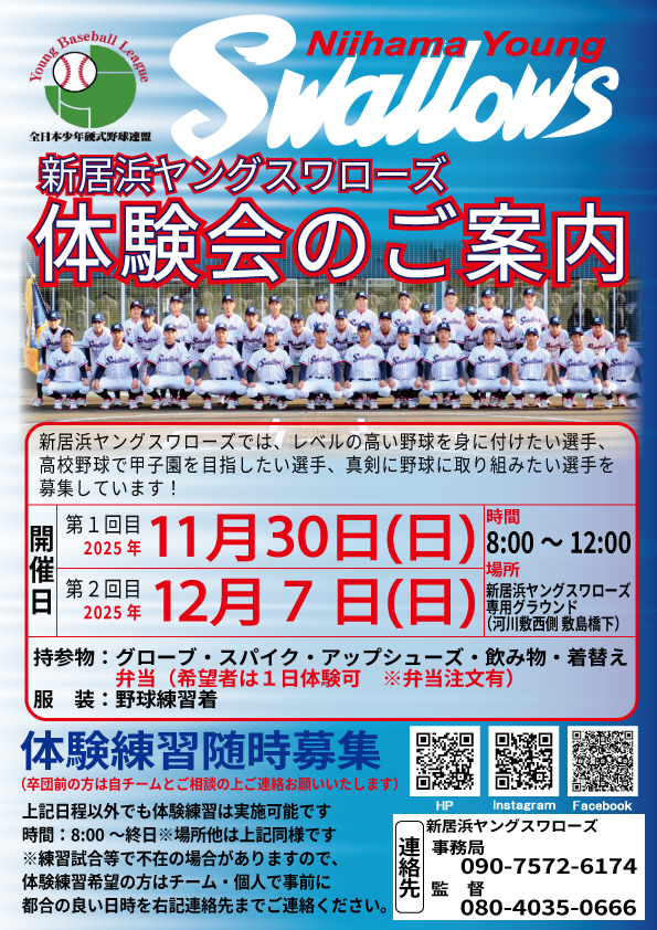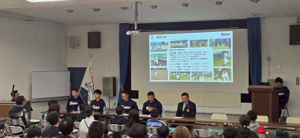 第48期生入団説明会、体験練習のお知らせ 2025年11月6日 最終更新日時 : 2025年11月18日 baseballswallows ツイート 11月6日に、新一年生の入団説明会を開催しました。平日の遅い時間にもかかわらず多くの子供達とお父さん、お母さんが来てくれました。 役員、監督からチームの紹介や練習内容、大会成績等の話があり、最後に新キャプテンから歓迎の挨拶がありました。 体験会お待ちしてます! Follow me! FacebooktwitterHatenaPocketCopy